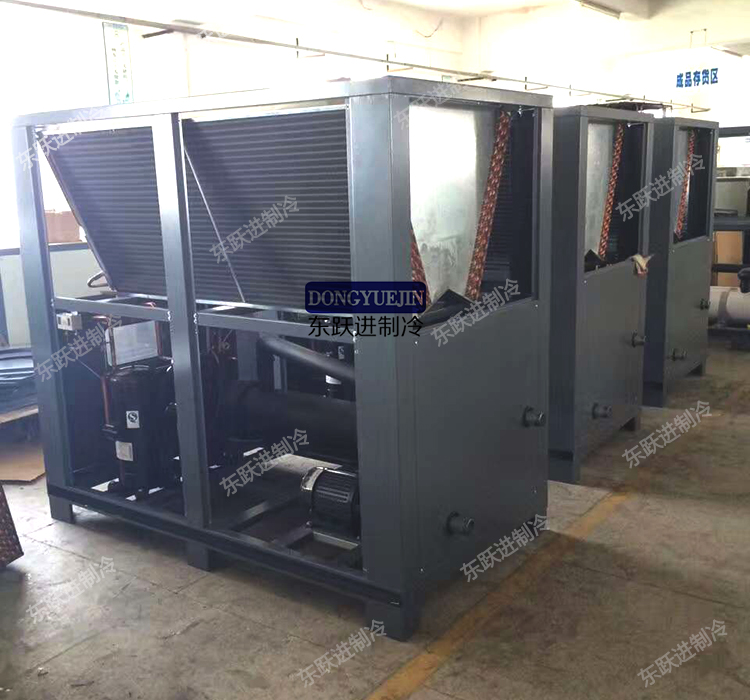 東躍進(jìn)制冷經(jīng)過(guò)十幾年的發(fā)展,雖然風(fēng)冷式箱式冷水機(jī)作為較簡(jiǎn)單的機(jī)型,但是使用的客戶還是非常多的,我們也對(duì)其進(jìn)行了多次升級(jí),機(jī)組在性能上更加的穩(wěn)定,故障率也非常低,多壓縮機(jī)制冷系統(tǒng)設(shè)計(jì)使使用比較節(jié)能。雖然每個(gè)廠家的風(fēng)冷箱式冷水機(jī)外觀不一樣,但實(shí)際上配置都相差無(wú)幾,都是由渦旋式壓縮機(jī),殼管式或水箱盤(pán)管式蒸發(fā)器,翅片式冷凝器,水泵,風(fēng)機(jī),膨脹閥,過(guò)濾器,高低壓壓力表,電控系統(tǒng),機(jī)箱等組成。